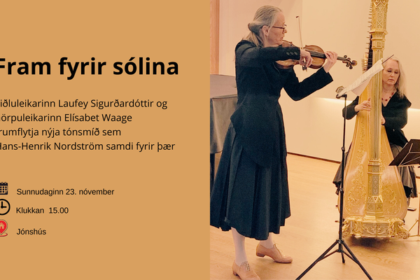 Fram fyrir sólina er yfirskrift tónleika þar sem frumflutt verður samnefnt verk.Það eru fiðluleikarinn Laufey Sigurðardóttir og hörpuleikarinn Elísabet Waage sem leika þessa nýju tónsmíð sem Daninn Hans-Henrik Nordström samdi fyrir þær. Innblástur verksins er þegar Venus fór fram fyrir sólina árið 2004.