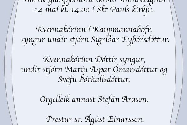 Sunnudaginn 14. maí er íslensk guðsþjónusta í Skt. Pauls kirkju.