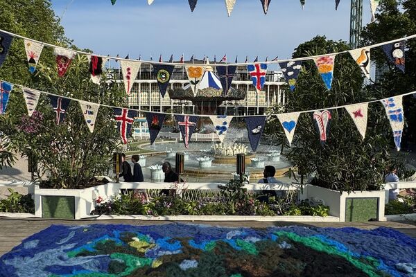 Garðurinn var fallega skreyttur íslenska fánanum og handprjónuðum veifum úr íslenskri ull í fánalitunum. Í ár var sú nýbreytni að íslensk börn búsett í Kaupmannahöfn skreyttu veifur með þæfðri ull sem bætt var í safnið. Nú prýða 3000 veifur Tivoli á 17. júní.