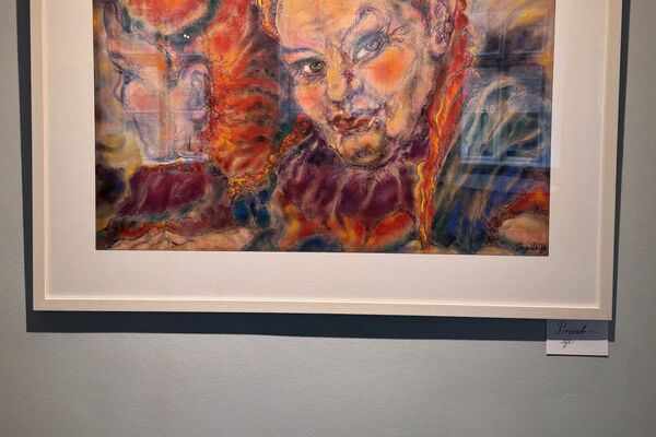 Fjöldi fólks lagði leið sýna í Jónshús á sólríkum laugardegi á opnun sýninginar Inge Delfs á andlistsmyndum.