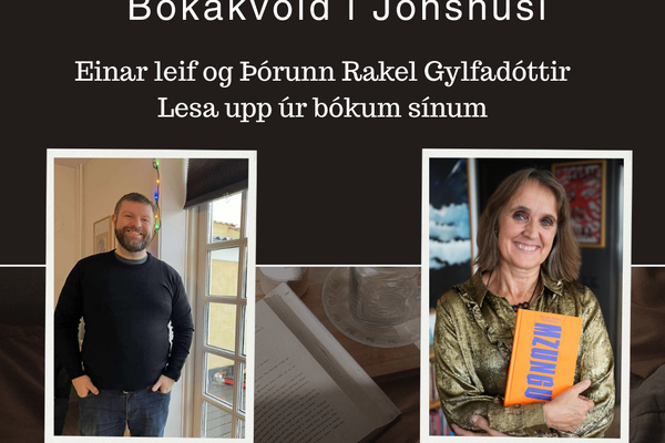 Fimmtudagskvöldið 18. desember kl. 19:00 verður haldin bókakynning og upplestur í Jónshúsi.Fram koma rithöfundarnir:Einar Leif, sem mun lesa upp úr nýútkominni bók sinni Sniglasúpunni, en hún er á lista vinsælustu glæpasagna hjá Storytel.