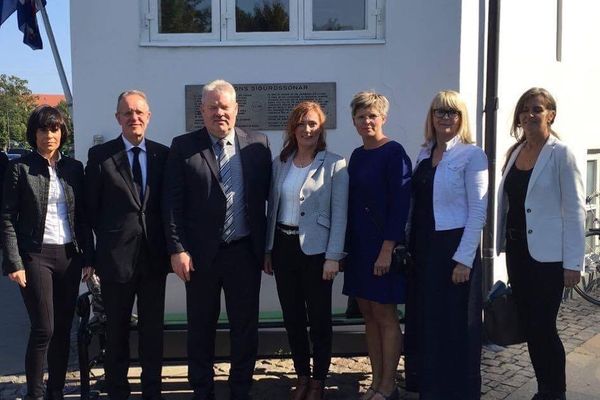 Forsætisráðherra Íslands, Sigurður Ingi Jóhannsson, og eiginkona hans, Ingibjörg Elsa Ingjaldsdóttir, heimsóttu Jónshús í dag. Forsætisráðherra hefur undanfarna daga verið í opinberri heimsókn í Danmörku sem lauk með stuttri viðkomu í Jónshúsi.