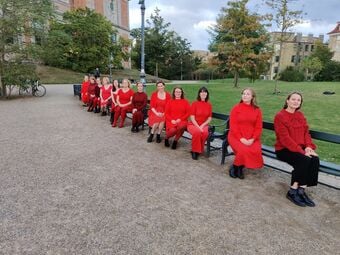 Eftir stundina ganga þau sem vilja að minnisvarða Jónasar Hallgrímssonar á Skt. Pederstræde.