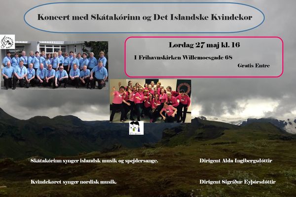 Íslenski Kvennakórinn býður Skátakórinn velkominn til Kaupmannahafnar og munu þessir tveir kórar halda tónleika í dag laugardag 27.maí klukkan 16:00 í Frihavnskirken á Austurbrú í Kaupamannahöfn.