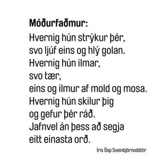 Bókin er einstök blanda ljósmyndunar, grafískrar hönnunar og ljóðlistar. Í verkinu má uppgötva náttúruna við fótmál á nýjan hátt; með því að rýna í það sem sjaldan er veitt eftirtekt. Ljóðin bæta við óvæntu sjónarhorni; tengja hrjúfa jörðina við mýkt og alúð móðurinnar. Loks eru lesendur dregnir enn nær jörðinni með ilmi úr náttúrunni sem úðað verður á síður bókarinnar. Umbrotið endurspeglar umfjöllunarefnið með blaðsíðum skornum út í hringi og pappír sem tekur mið af myndefni hvers hrings.