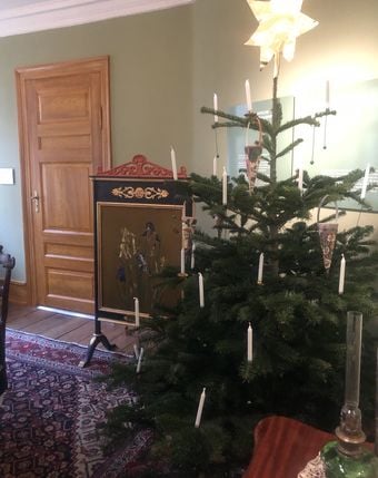 Nú er íbúð þeirra heiðurshjóna komin í jólabúning. Sett hefur verið upp jólatré í stofunni eins og þau gerðu á sínum tíma