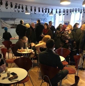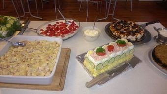 Margir lögðu leið sína í Jónshús á sunnudaginn var. Að vanda var sunnudagskaffihlaðborð að lokinni íslenskri guðsþjónustu.