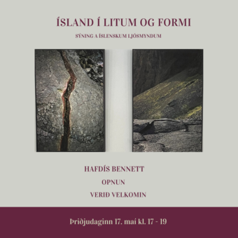 Verið velkomin á opnun sýningar Hafdísar Bennett á íslenskum ljósmyndum í Jónshúsi.Ljósmyndir Hafdísar eru óvenjulegar að því leyti að þær eru nærmyndir af hinni sérkennilegu íslensku náttúru, hraunum, svörtum fjörum, stuðlabergi, mosa o.s.frv.