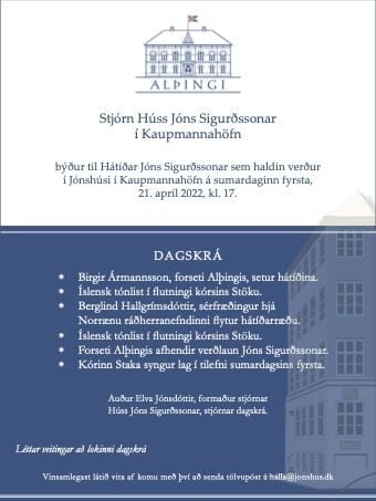 Hátíð Jóns Sigurðssonar verður haldin í Jónshúsi á sumardaginn fyrsta, 21. apríl 202020, kl. 17.